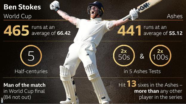 “Ben Stokes pulled off the performance of a lifetime – twice in the space of a few weeks,” said Wisden’s editor, Lawrence Booth. “First, with a mixture of outrageous talent and good fortune, he rescued England’s run-chase in the World Cup final, before helping to hit 15 off the super over. Then, in the Third Ashes Test at Headingley, he produced one of the great innings, smashing an unbeaten 135 to pinch a one-wicket win.”
