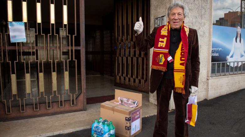 The elderly fans of the football club AS Roma are receiving food and medical packages from the club. Image Source: CNN