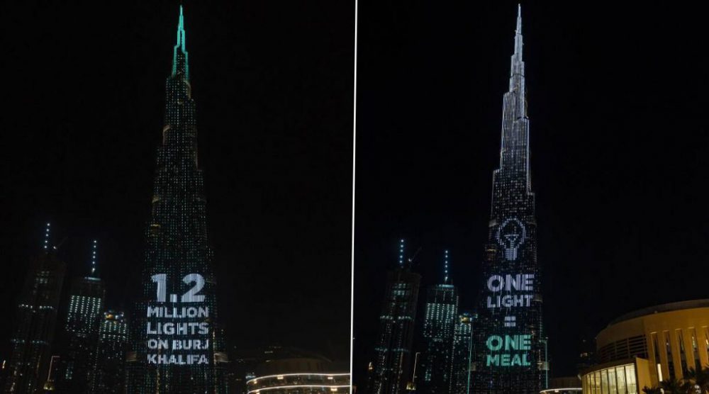 Together, we lit up 1.2 million lights, sharing our message of hope to the world and achieving the impossible. #BurjKhalifa #1Light1Meal #WorldsTallestDonationBox@MBRInitiatives pic.twitter.com/TSOqsd5ctd