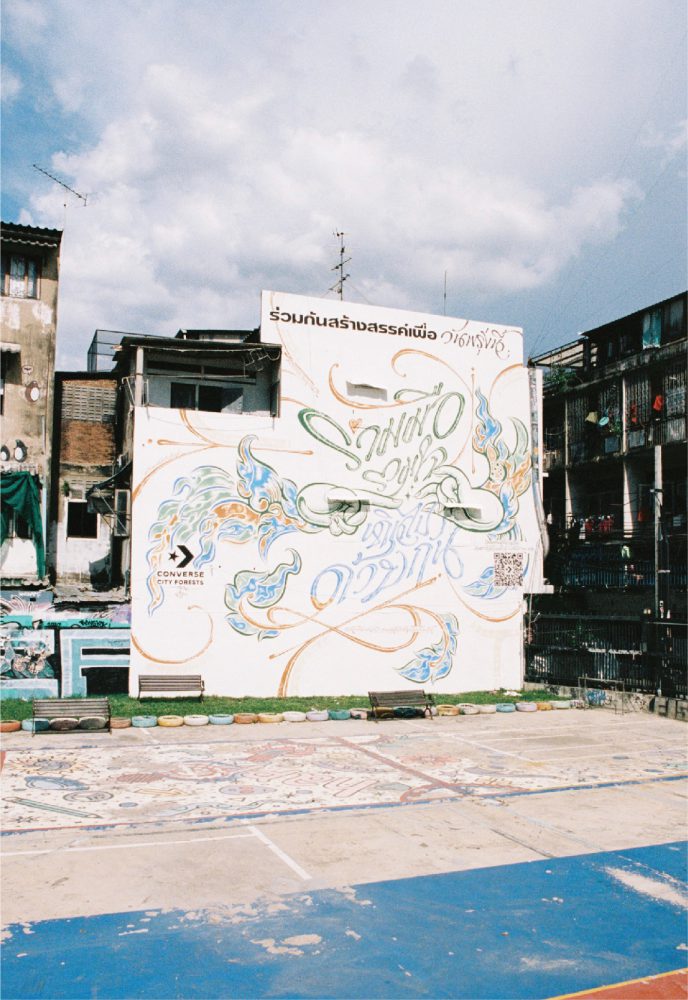 For the mural in Thailand, Converse collaborated with local artists TRK (Teerayut Puechpen), a contemporary Thai street artist and Sorravis Prakong, a calligraphy and typography artist. The mural depicts two an image of holding hands, symbolizing unity.