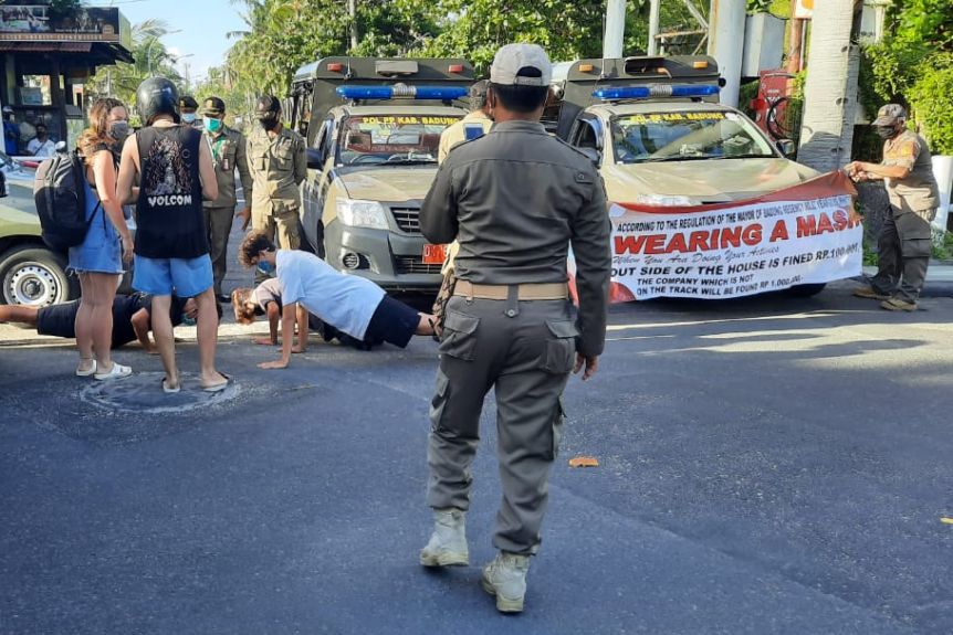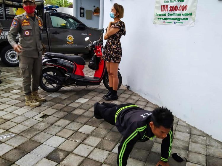 Bringing about a very unusual punishment, authorities in Bali are punishing foreigners that have breached the coronavirus health protocols by forcing them to do push-ups!