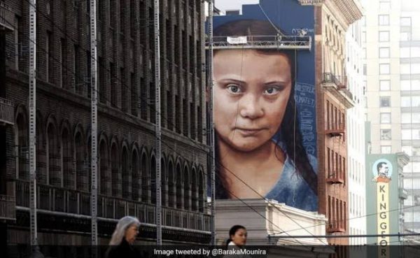 A huge mural of Swedish teenage climate activist Greta Thunberg, 60-foot tall and 30-foot wide, stared down from San Francisco just hours after the activist left the United States of America by boat. She is now headed to Madrid in Spain for a United Nations climate change summit to be held in December.
