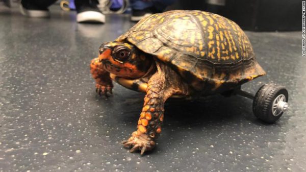 When the 15-year-old turtle Pedro was adopted by Sandra Traylor, he had already lost one of his hind legs and, as a result, was three-legged. However, Pedro escaped from his enclosure in Traylor’s backyard, and when he returned a few months later, he lost his other hind leg too. Consequently, his mobility was severely impaired.