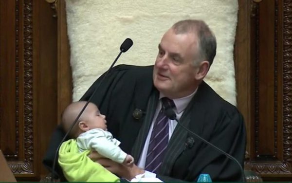 A lawmaker @tamaticoffey in New Zealand brought his baby to the parliament after coming back from paternity leave. The House speaker @SpeakerTrevor babysat for him during a debate. pic.twitter.com/KaqMyIYhdv