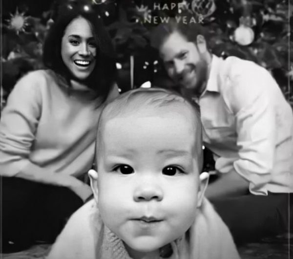 The electronic card was released by the Queen’s Commonwealth Trust Twitter account. It shows a black and white picture of the adorable Archie in the front at the centre, staring into the camera while the parents, Harry and Meghan are smiling in the background.