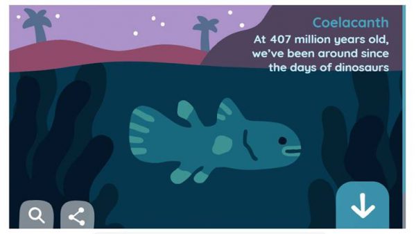 The next animal on the doodle is ‘Coelacanth,’ a rare fish found off the east coast of Africa. At 40-million years old, it is known to be one of the oldest species ever and has been existing since the time of dinosaurs!