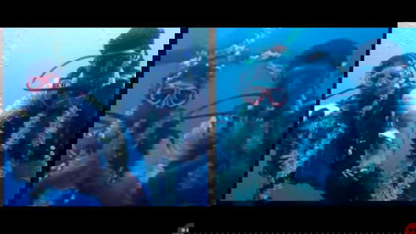In the ceremony that lasted 45 minutes, the couple exchanged garlands and the traditional thaali (a pendant hanging by the thread) underwater while their relatives waited ashore.