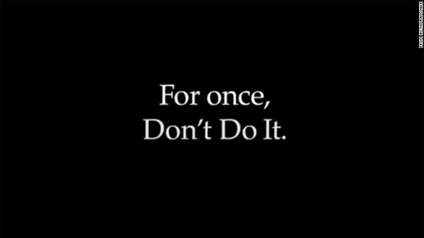 The message in the advertisement says: “For once, Don’t Do It. Don’t pretend there’s not a problem in America. Don’t turn your back on racism. Don’t accept innocent lives being taken from us. Don’t make any more excuses. Don’t think this doesn’t affect you. Don’t sit back and be silent. Don’t think you can’t be part of the change. Let’s all be part of the change.”