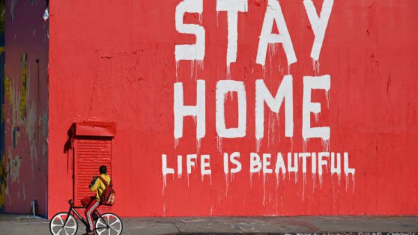 Here is one from San Francisco, where a mural reads ‘Stay Home. Life is Beautiful.’