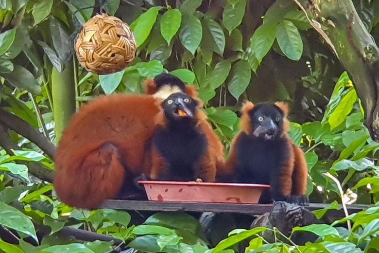 These species are native to the north-eastern region in the island of Madagascar in the Indian Ocean. These red-ruffed lemurs are a sister species to the black and white ruffed lemurs.