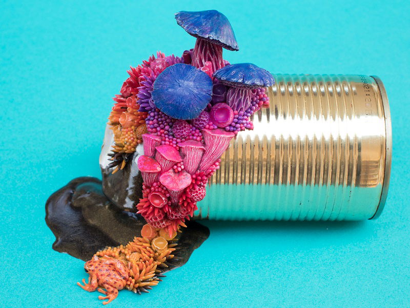 Let nature grow back—that’s what her sculptures also demonstrate. She uses discarded stuff like cans and plastic bottles. She then creates miniature flora and fauna using clay to make the sculptures complete.